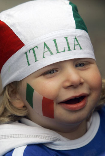 A young soccer fan of Italy smiles before the World Cup 2006 soccer match between Japan and Brazil in Dortmund, June 22, 2006. (Reuters)