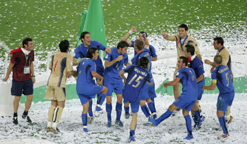 Italy players celebrate after the World Cup 2006 final soccer match between Italy and France in Berlin July 9, 2006. (Reuters)