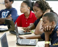 Students work on their laptops on the first day of school at the 'School of the Future' in Philadelphia, September 7, 2006. |