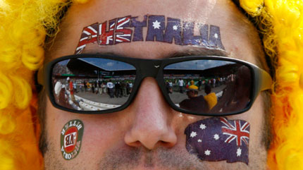Australia's fan attends the Group B Rugby World Cup match between Australia and Fiji in Montpellier September 23, 2007. (Reuters)