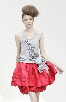 A model wears a creation as part of Moschino Spring/Summer 2008 women collection during the Milan Fashion Week in Milan September 25, 2007. (Reuters)