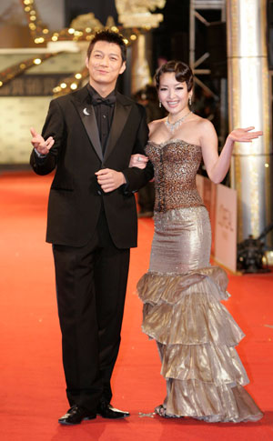 Taiwan's Nie Yun (L) and Lu Jia-yi, hosts for the red carpet of 44th Golden Horse Awards, pose as they arrive in Taipei December 8, 2007. (Agencies)