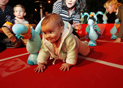 A baby sprints away before the start of a Christmas crawling race in Madrid December 13, 2007. (Agencies)