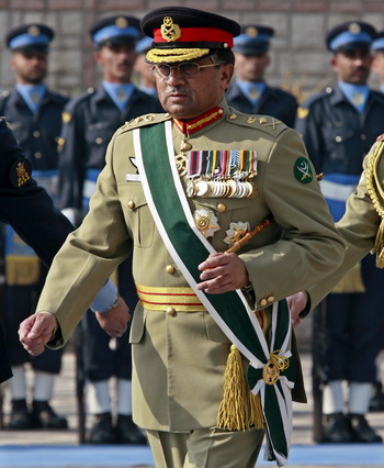 Pakistani General Pervez Musharraf reviews the guard of honour at the Air Force Headquarters in Islamabad November 27, 2007. Musharraf said farewell to military colleagues on Tuesday as he prepared to become a civilian president ahead of January's general election.