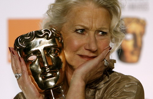 Helen Mirren poses with her Best Actress award at the BAFTA (British Academy of Film and Television Arts) awards at The Royal Opera House in London February 11, 2007.