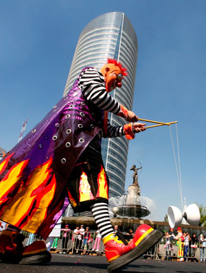 A clown plays on the streets during the "Three Kings Day" festival in Mexico City January 6, 2008. "Three Kings Day" is a Christian holiday in Mexico which celebrates the Three Wise Men who brought gifts to Christ as a child. (Agencies)