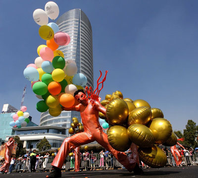 An actor performs on the streets during the "Three Kings Day" festival in Mexico City January 6, 2008. "Three Kings Day" is a Christian holiday in Mexico which celebrates the Three Wise Men who brought gifts to Christ as a child. (Agencies)