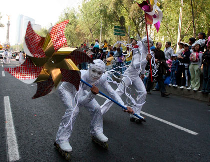 Skaters perform on the streets during the "Three Kings Day" festival in Mexico City January 6, 2008. "Three Kings Day" is a Christian holiday in Mexico which celebrates the Three Wise Men who brought gifts to Christ as a child. (Agencies)