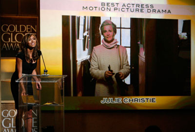 Entertainment journalist Giuliana Rancic announces actress Julie Christie as winner of the Golden Globe Award for best actress in a drama motion picture for her role in "Away From Her" at the 65th annual Golden Globe Awards news conference at the Beverly Hilton hotel in Beverly Hills, California January 13, 2008. (Agencies)