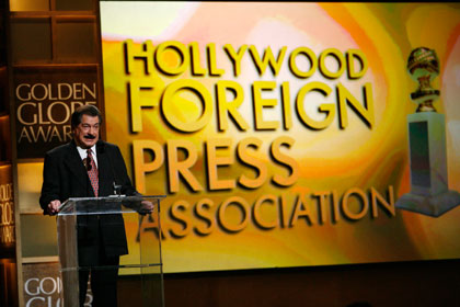 Jorge Camara, president of the Hollywood Foreign Press Association, speaks to guests at the 65th annual Golden Globe Awards news conference at the Beverly Hilton hotel in Beverly Hills, California January 13, 2008. (Agencies)