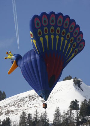 A hot air balloon takes off at the start of the International Hot Air Balloon Week in Chateau-d'Oex January 19, 2008. Over 80 balloons from 20 countries are participating in the ballooning event in the Swiss mountain resort famous for ideal flight conditions due to an exceptional microclimate. (Agencies)