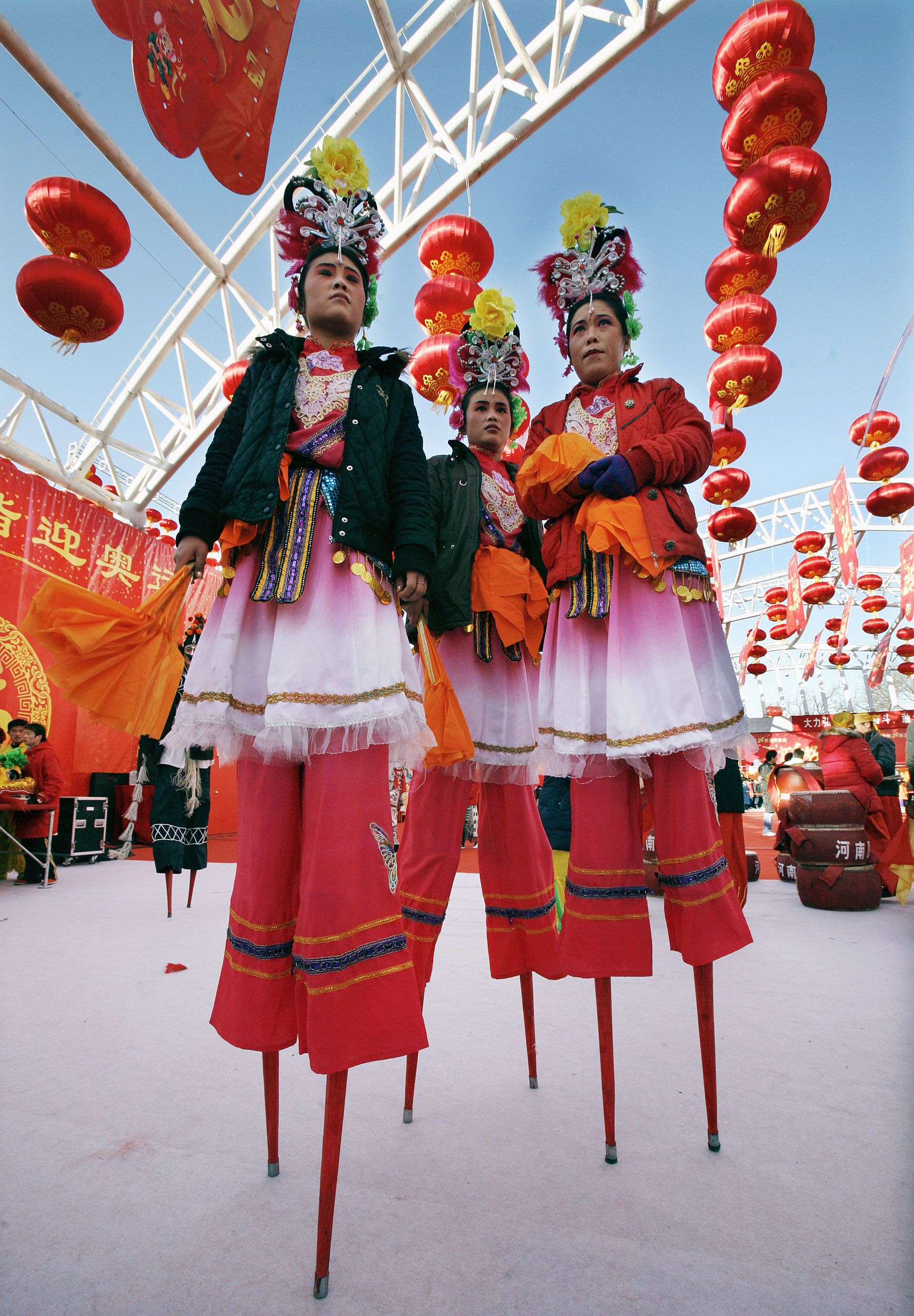 Stilt performers wait for the show to start during a cultural presentation to celebrate the Chinese New Year at Longtan Park in Beijing February 6, 2008. (Agencies)