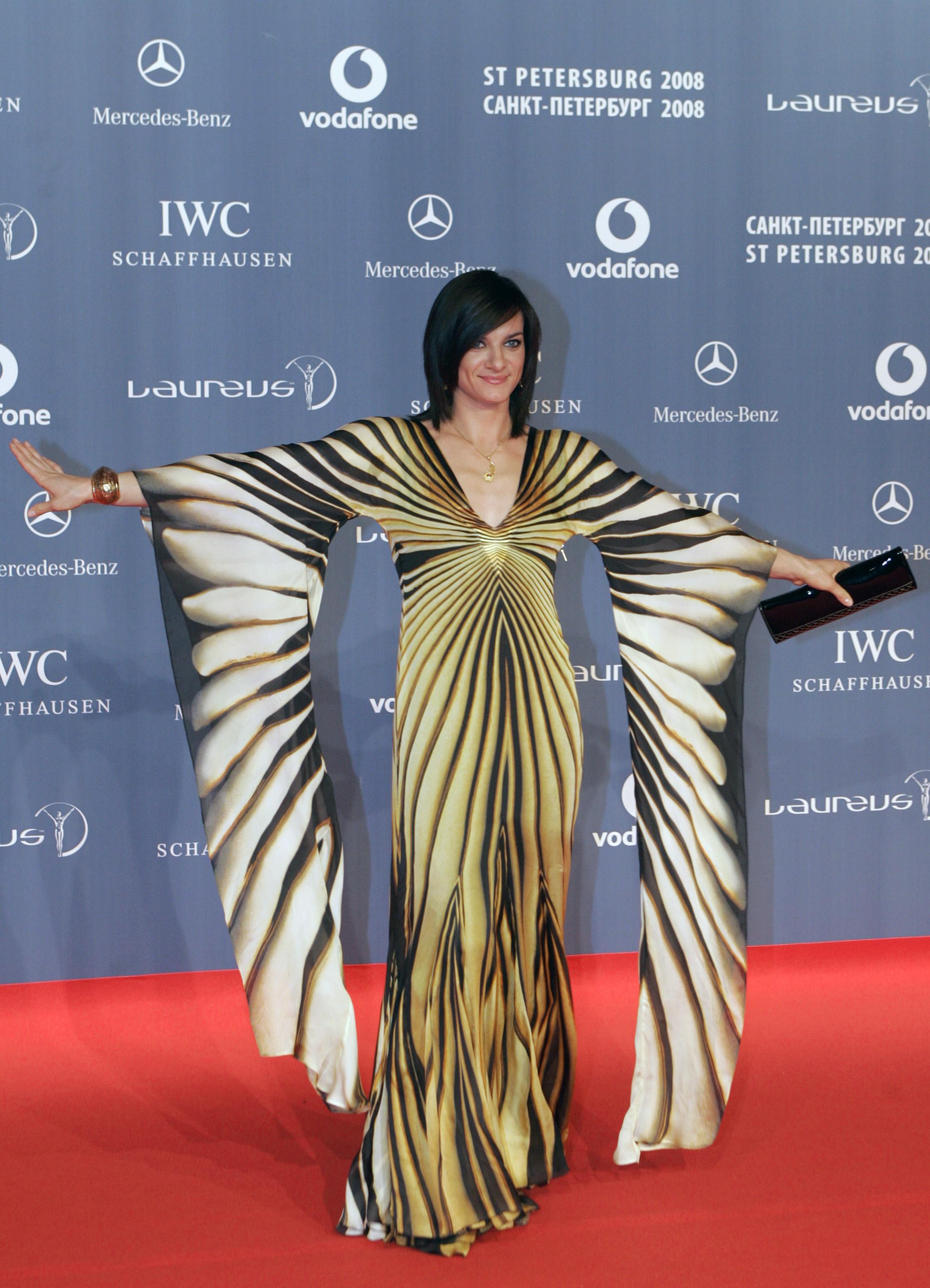 Russian pole vaulter Yelena Isinbayeva arrives for the Laureus awards ceremony in the Mariinsky Theatre in St Petersburg February 18, 2008. Tennis world number one Roger Federer won the prestigious Laureus Sportsman of the year award for a record fourth year in a row on Monday. (Agencies) |