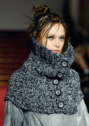A model presents a creation by Japanese designer Atsuro Tayama as part of his Fall/Winter 2008/09 women's ready-to-wear fashion show in Paris February 25, 2008. (Agencies)