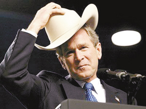 上周六晚,美國總統(tǒng)布什頭戴牛仔帽,一展歌喉,用歌聲提前告別白宮生活。