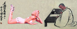 The picture made by Zhang Wei, a Chinese contemporary artist, combines Qi Baishi's fanciful watercolor figures and voluptuous images of Marilyn Monroe. (Agencies)