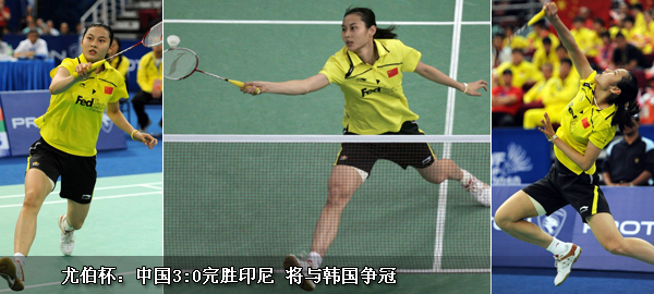 尤伯杯:中國(guó)3:0完勝印尼 將與韓國(guó)爭(zhēng)冠