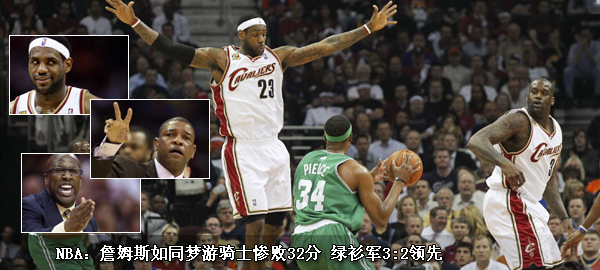 NBA:詹姆斯如同夢游騎士慘敗32分 綠衫軍3:2領(lǐng)先